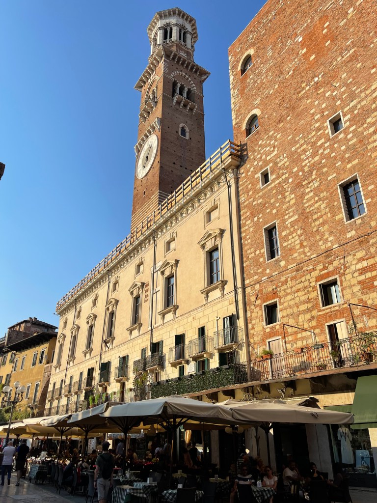 The Piazza della Erbe is a bustling square in the historic centre of Verona It has been a central hub of activity since Roman times and is known for its vibrant atmosphere. It is lined with colorful buildings, cafes, and shops. It is a must-visit destination for soaking up the lively energy and history of Verona. We had dinner at one of the restaurants, the food was delicious and the atmosphere was great.