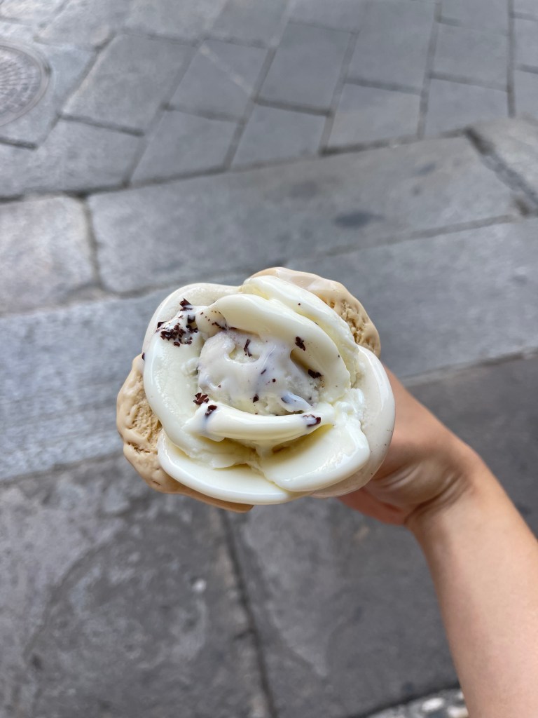 The famous ice cream chain throughout Italy called Amorino is definitely worth going. The ice cream is delicious and they make it in the cone in form of a flower which is super pretty. As you can see in the picture below, it melts super fast so you got to eat it fairly quickly.